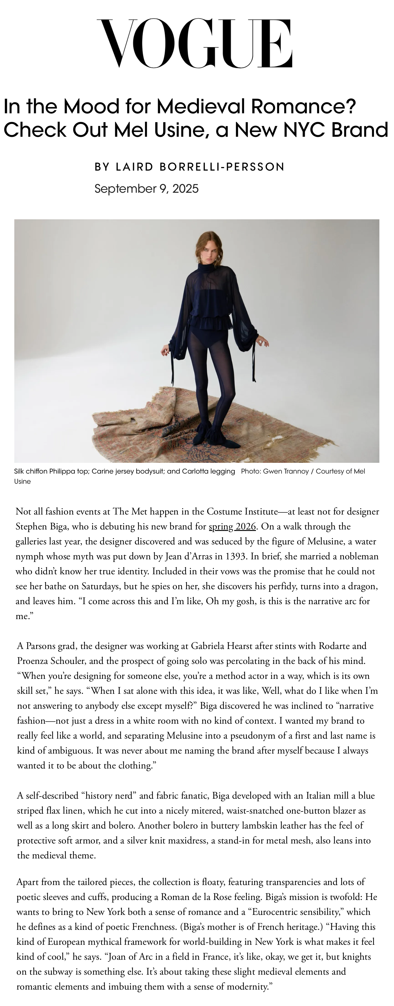 "In the Mood for Medieval Romance? Check out Mel Usine, a New NYC Brand."